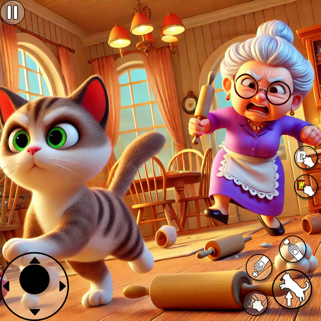 In My Bad Cat Granny Simulator 3D, cats can engage in hilarious antics. This includes knocking over vases, stealing food, scratching furniture, and causing maximum damage throughout Granny's house.