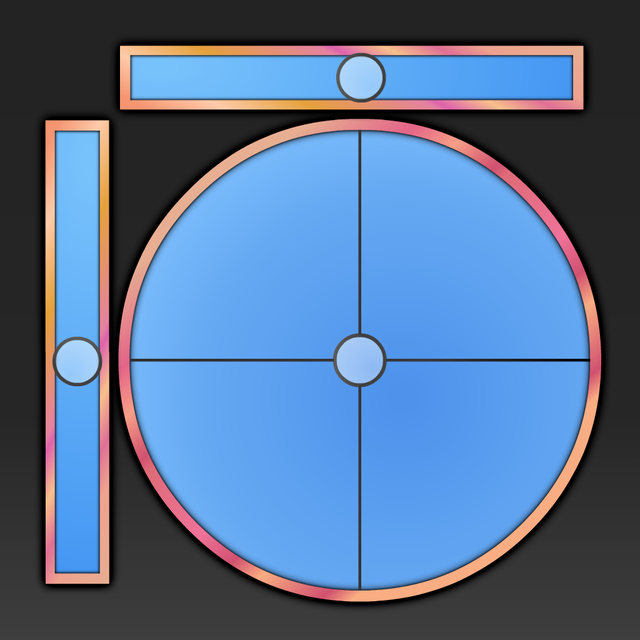 level gauge pro - A screenshot of the level gauge pro app showing horizontal vertical and circular bubble levels with angle measurements on a brushed metal background