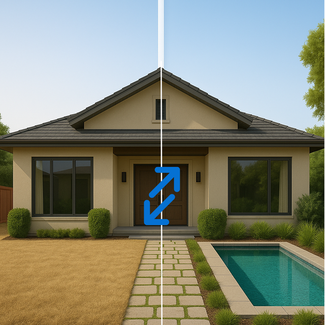 Upload a photo of your yard, rooftop, or garden and watch it instantly transform into a realistic 3D pool design tailored to your specific space.