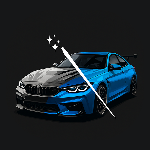 Prueba al instante vinilos mate, brillantes o metálicos en tu propio coche para ver exactamente cómo reflejan la luz antes de visitar el taller.