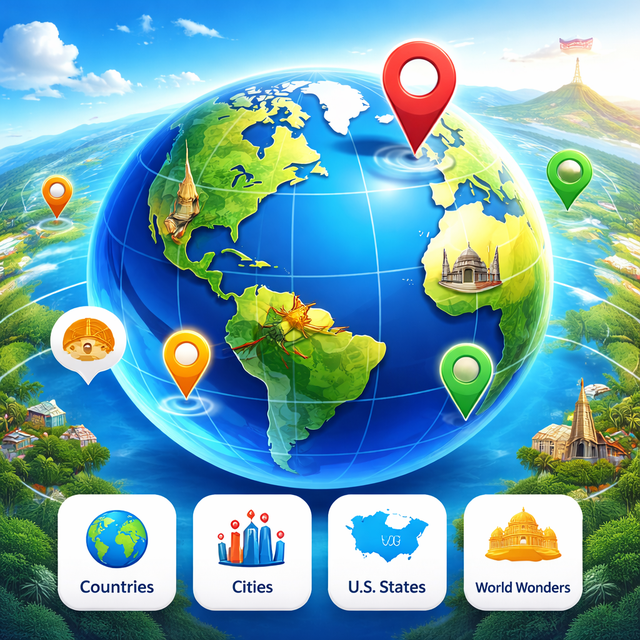 Descubre maravillas del mundo, rastrea tus viajes con marcadores personalizados y domina la geografía a través de una interfaz hermosa e interactiva diseñada para exploradores de todas las edades.