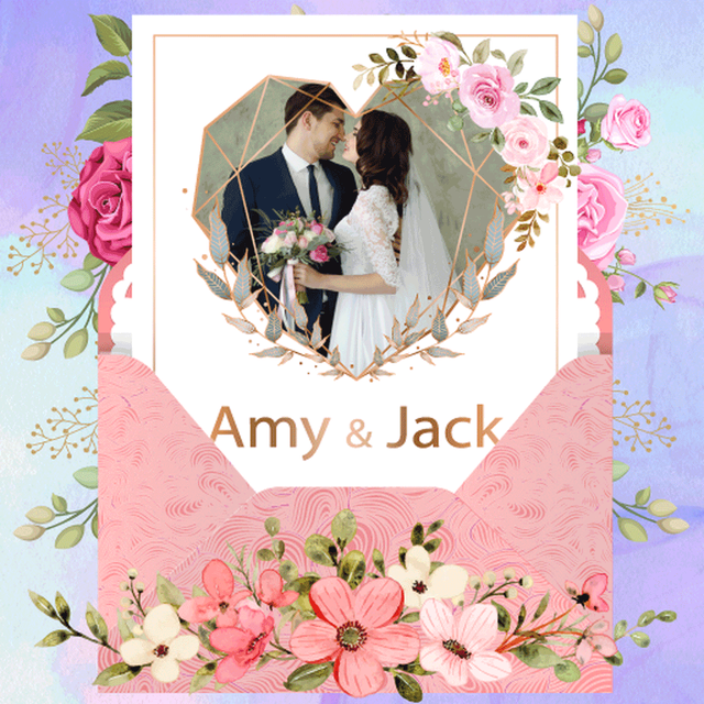 Wedding Invitation Card Maker ofrece una amplia personalización, que incluye agregar texto, marcos, pegatinas y citas. Los usuarios también pueden subir sus propias fotos, cambiar esquemas de color y usar varias formas y líneas.